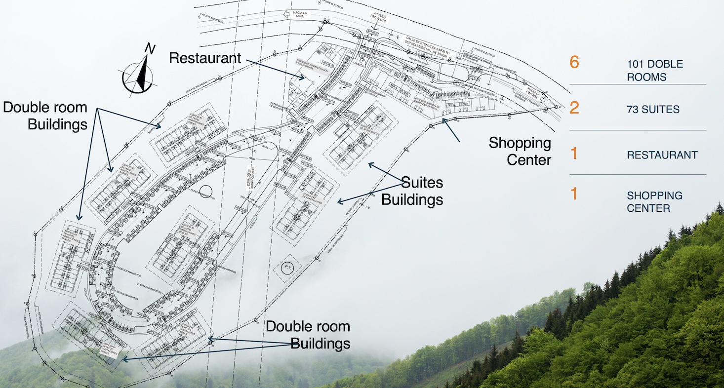 The hotel complex will consist of 6 buildings with 101 double rooms and 2 buildings with 73 suites surrounded by virgin nature.
